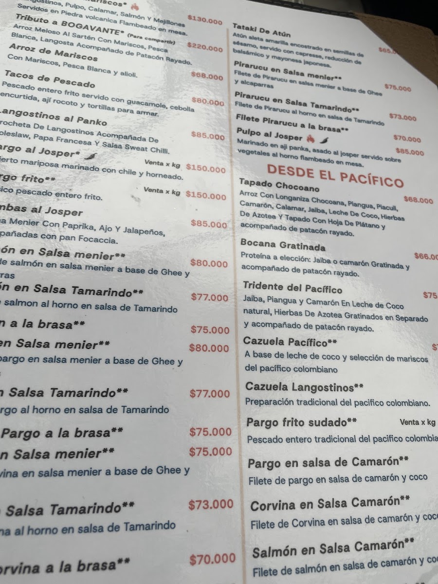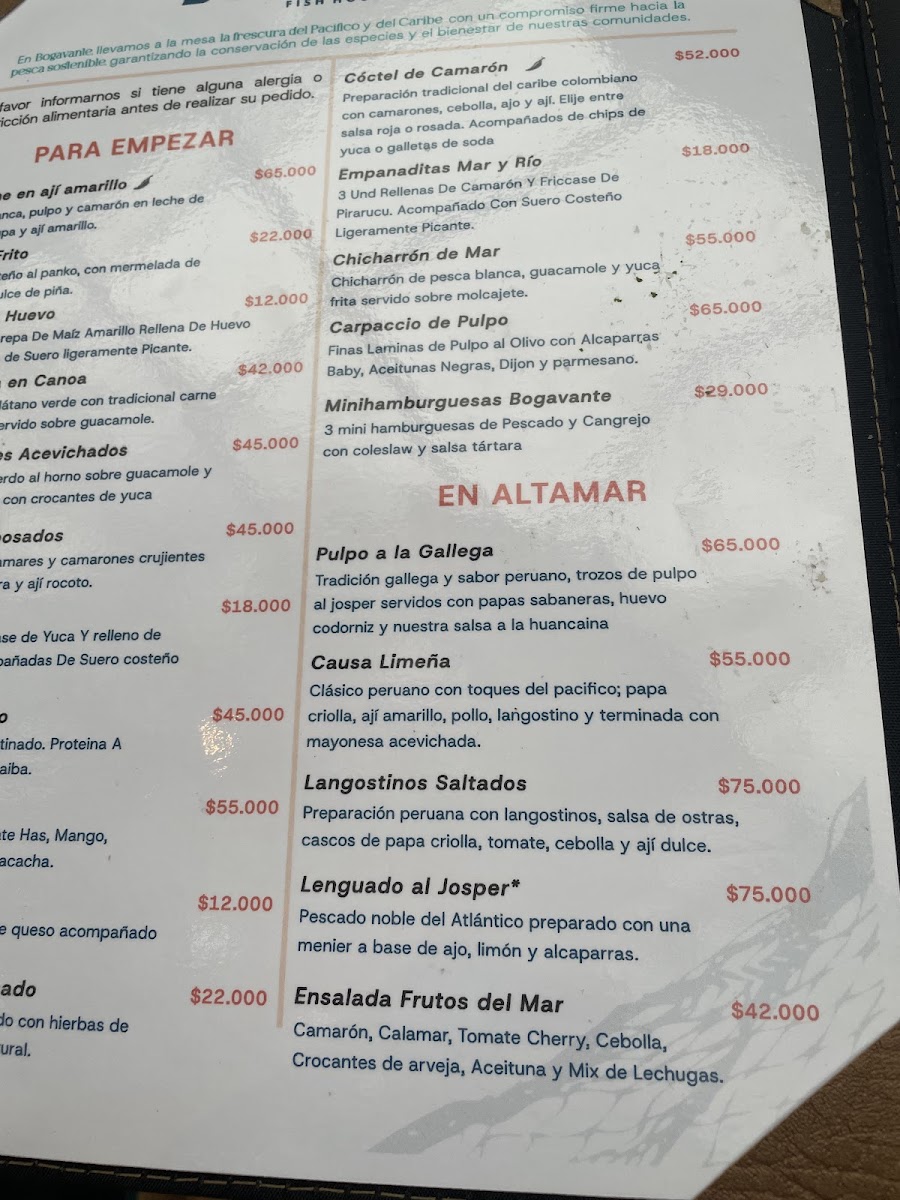 Bogavante Fish House Menu